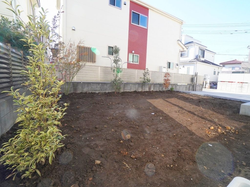 お庭には植栽も入りました。広々としていますので、いろいろな使い方ができますね。