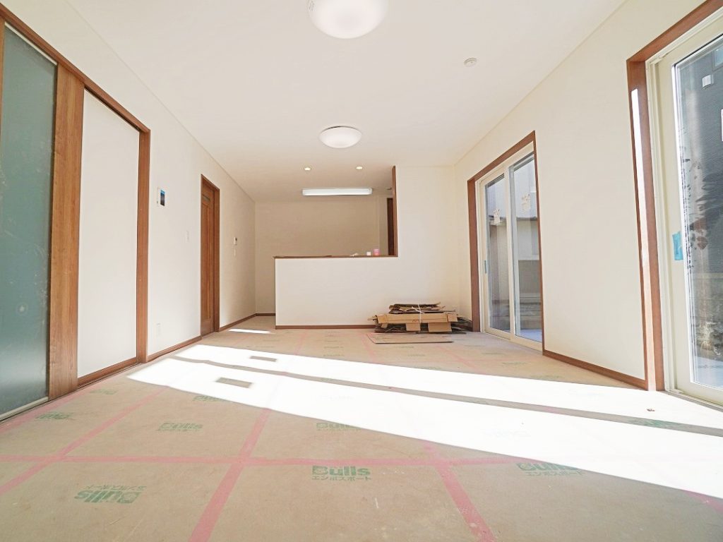 室内の様子です。17.7帖の広々リビングは南側から光が差し込みます。