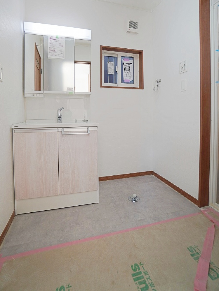 リビングからと玄関からの出入り口が2か所あり、2wayで使える洗面所。