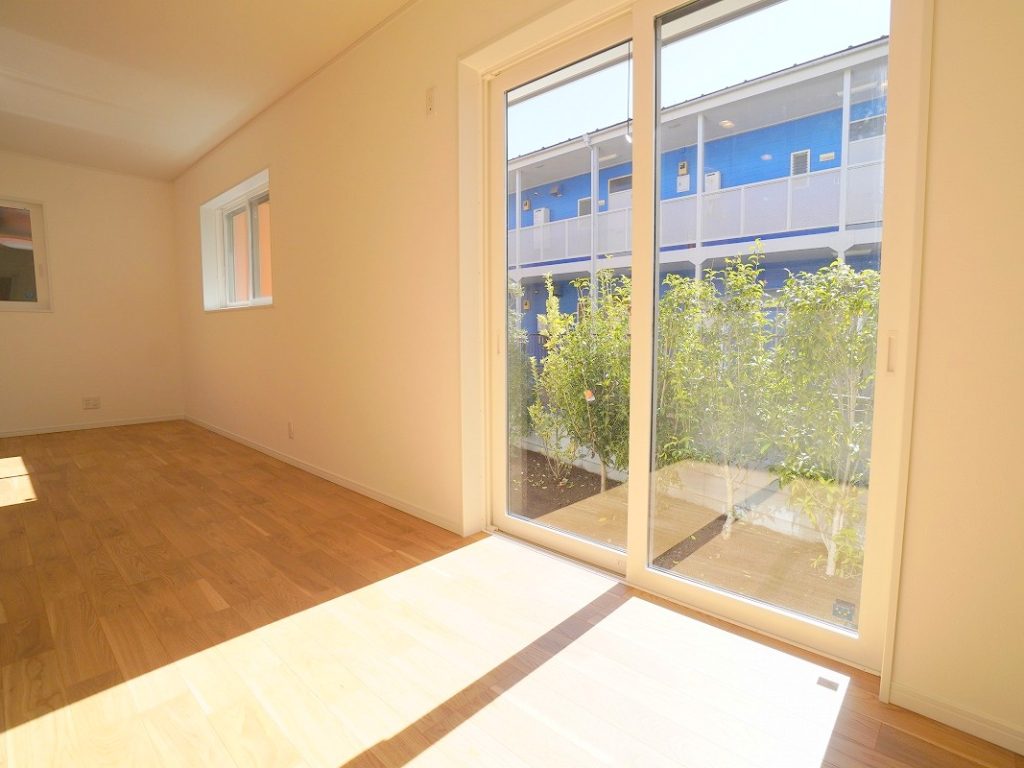 室内からの様子です。目の前が歩道ということで、植栽が丁度よい目隠しになります。