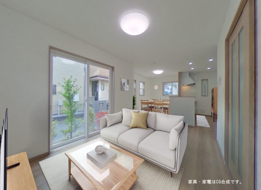 | 設備 | 人造大理石シンクシステムキッチン・音響システム付きシステムバス・エコジョーズ・1階2階ウォシュレット付トイレ・全室照明付・ カラーTVインターホン・シャンプードレッサー三面鏡洗面台・ロフト・住宅用火災警報機 ・1階サッシにはシャッター又は面格子・階段手摺り・高性能樹脂窓・Low-E複合ガラス・24時間換気システム・オープン外構・基礎パッキン工法・ベタ基礎・外壁は通気工法 ・構造面材利用 |
