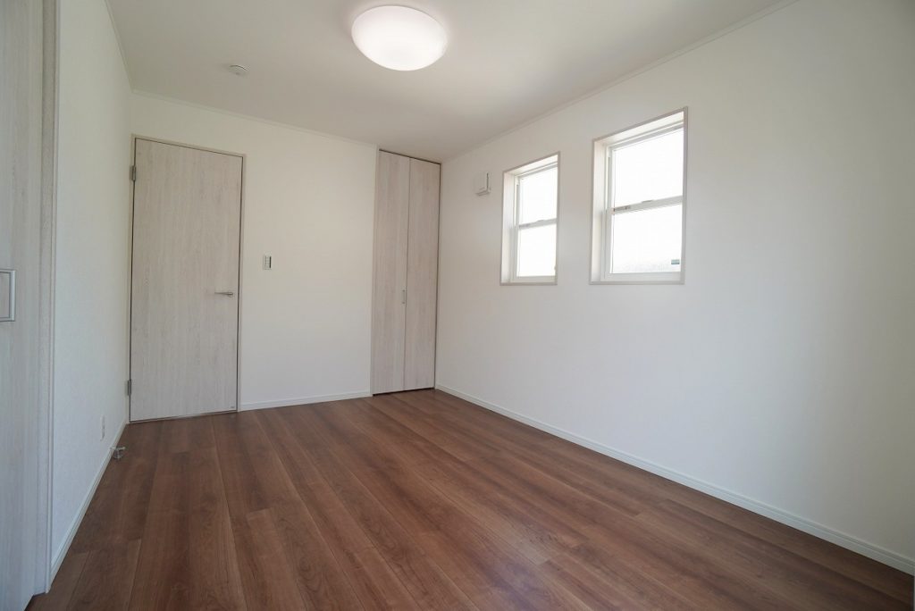 2階洋室は3部屋。こちらは6帖洋室です。クローゼットが2か所付いたお部屋、お家もスッキリと片付きます。