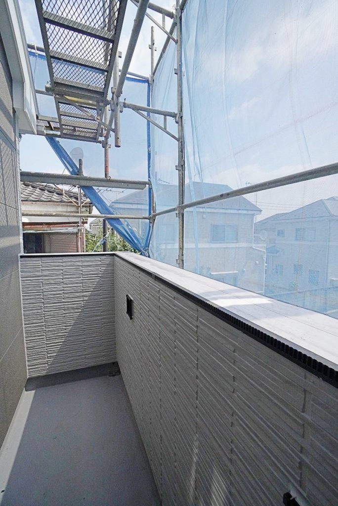 東側のバルコニーに出てきました。こちらの物件はバルコニーが東と南2つあるので、季節や時間帯でお洗濯を干し分けたり、植物を育てるのも楽しそうです。