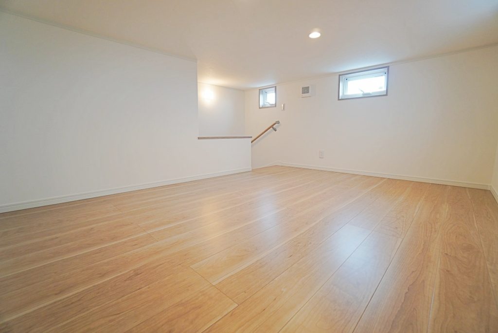 小屋裏収納6帖に上がってきました。直階段で上がれる便利な空間。お部屋と同じフローリング仕上げなので、書斎やお子様の秘密基地など使い方は無限大。どうやって使おうかワクワクしますね♪