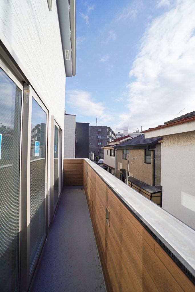 バルコニーに出てきました。2部屋にまたがっているので、長さがあり、お洗濯物も沢山干せますね♪南向きなので、日差しもたっぷり入ります。