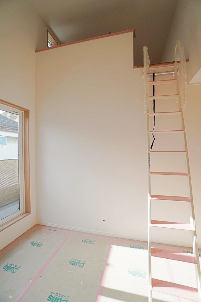 4.4帖のロフトに上がってきました。窓が2つもあるので、風通しもバッチリです!趣味のお部屋や書斎に使うのも良いですね!