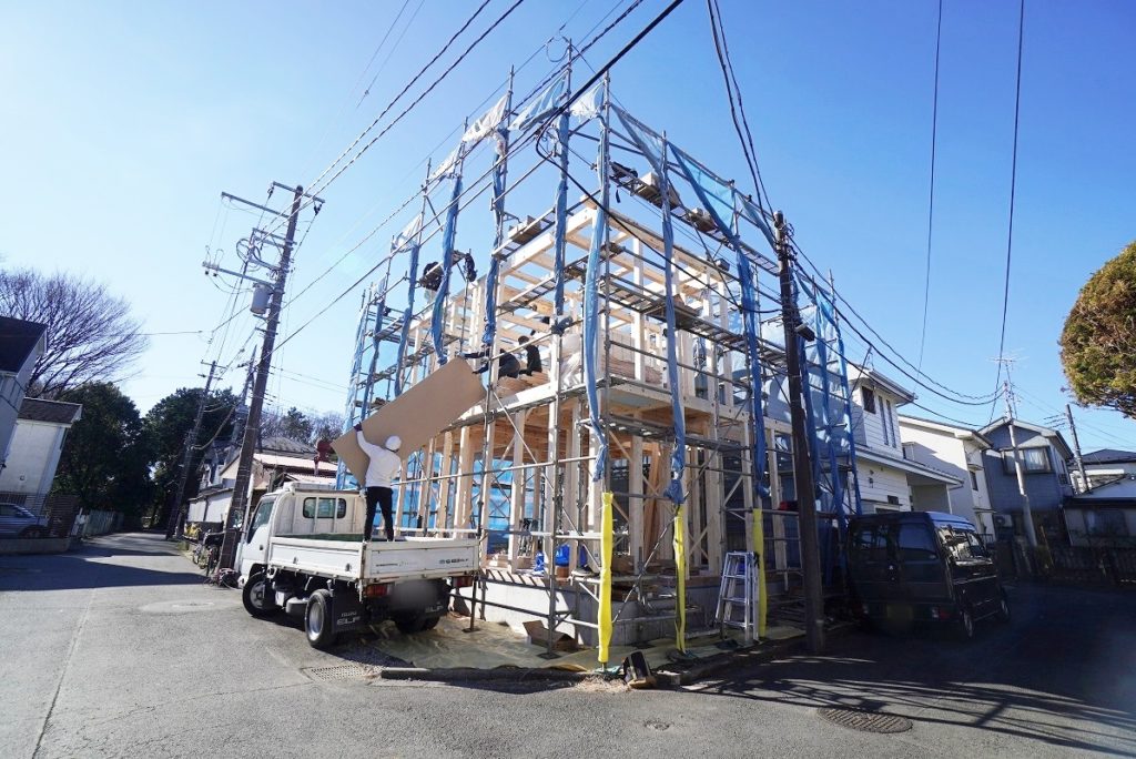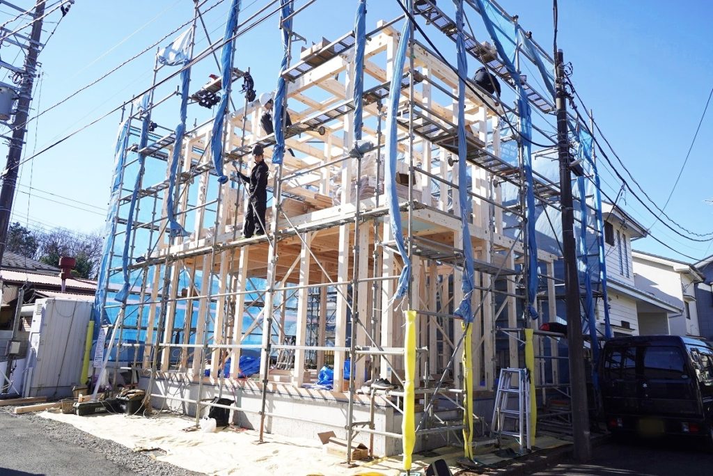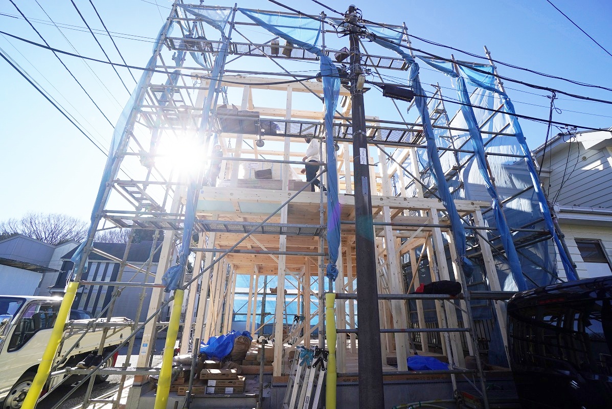 建物全体の骨組みが一気に立ち上がり、住まいの大きさや存在感がはっきりと分かるようになりました。