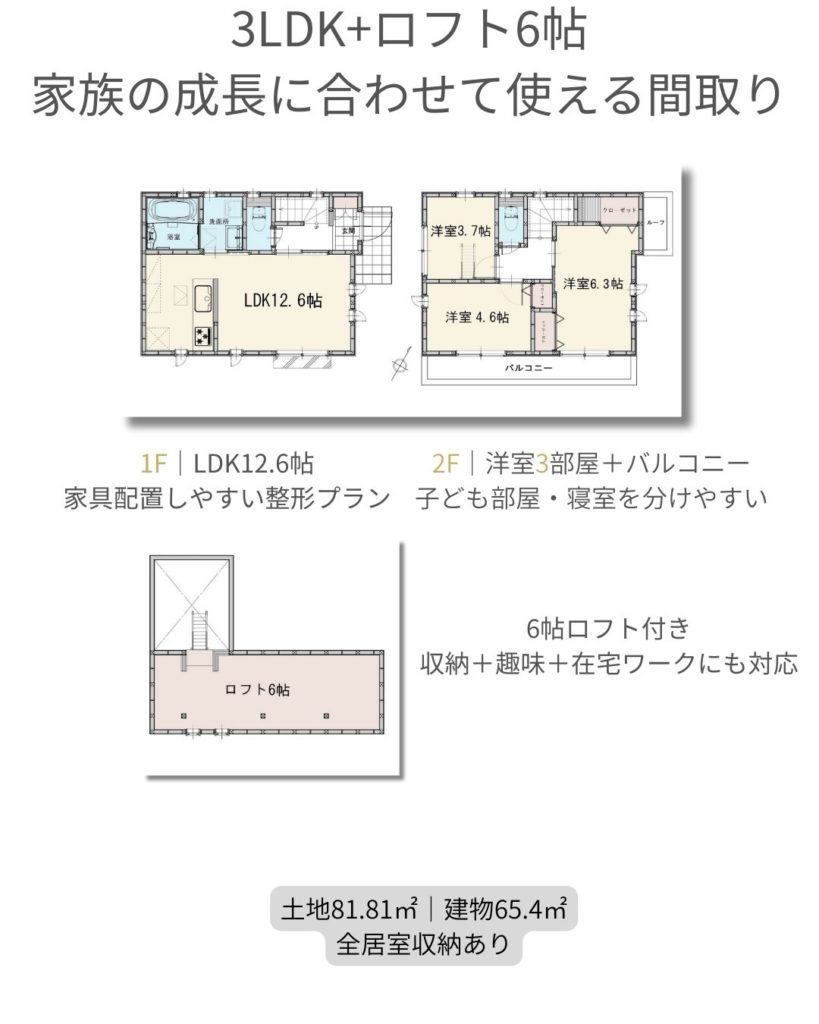 ●6帖のロフトは、収納や趣味スペースなど、さまざまな用途に使える便利な空間