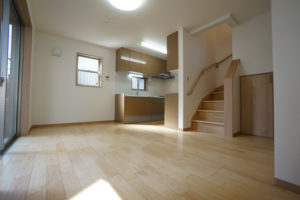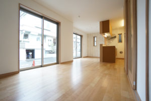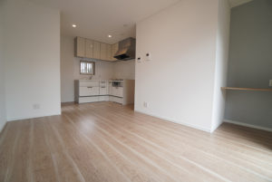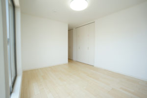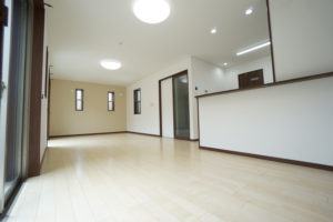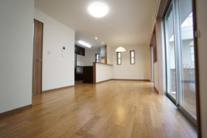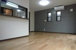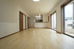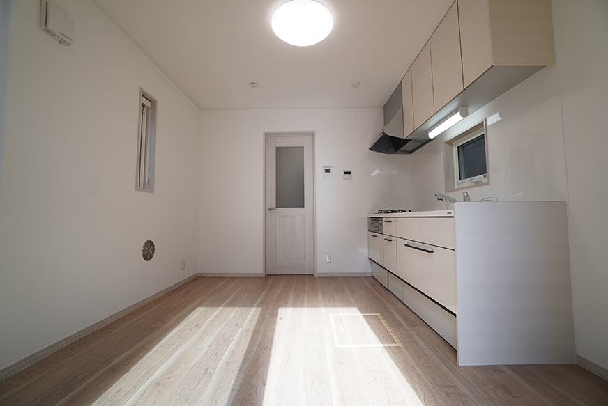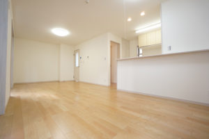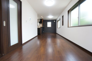 いすを引きずったり、ものをぶつけても傷つきにくい。建具とカラーを合わせて、統一感のある空間に。